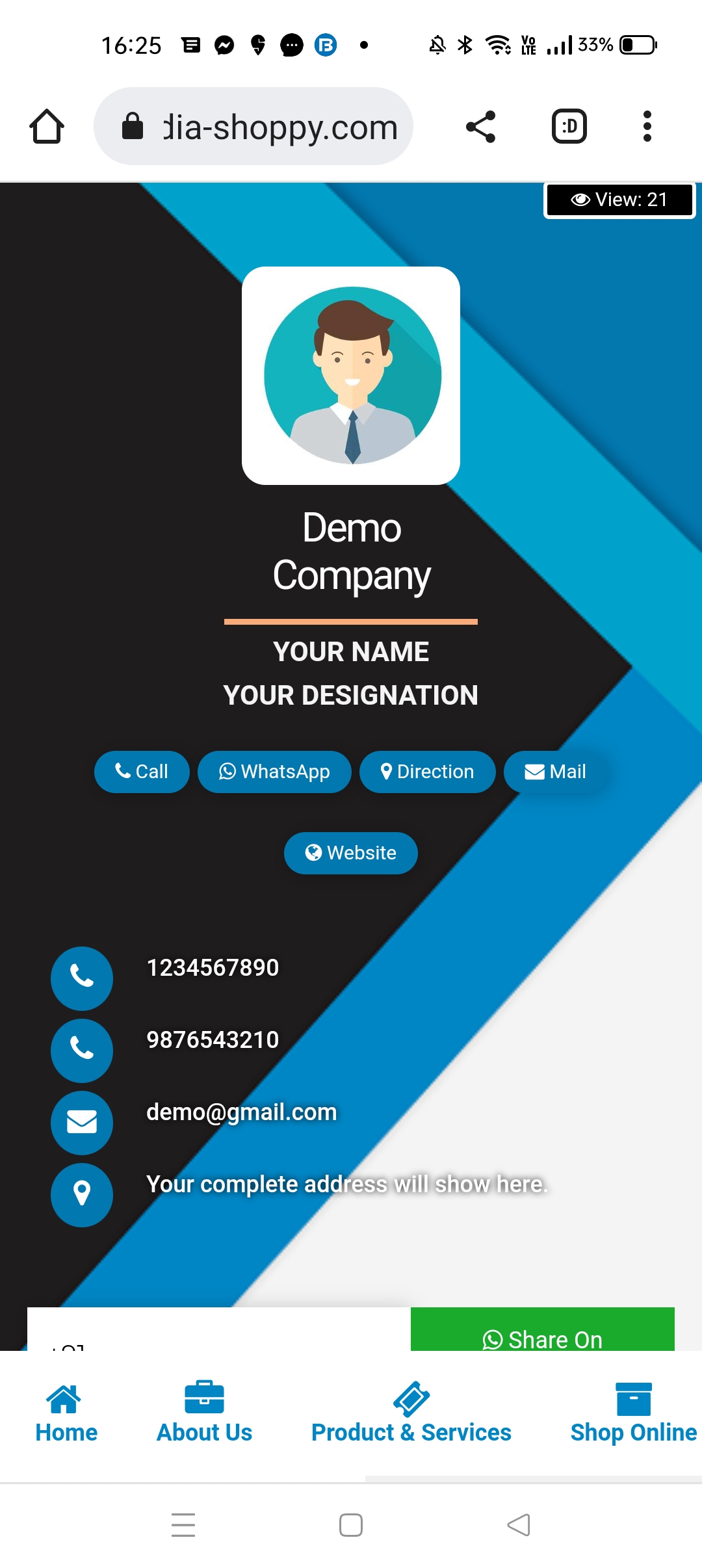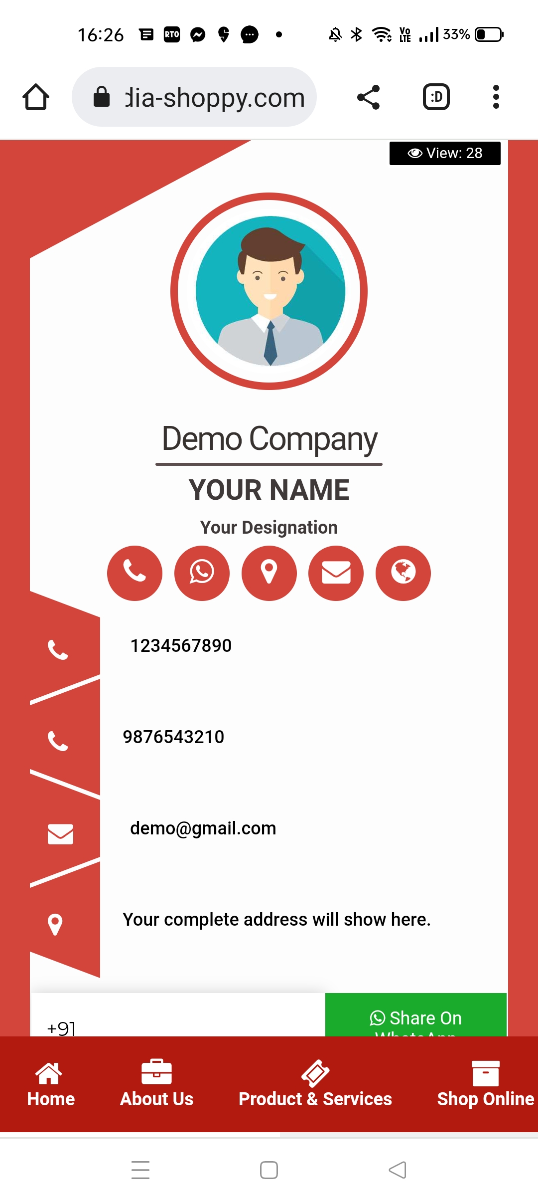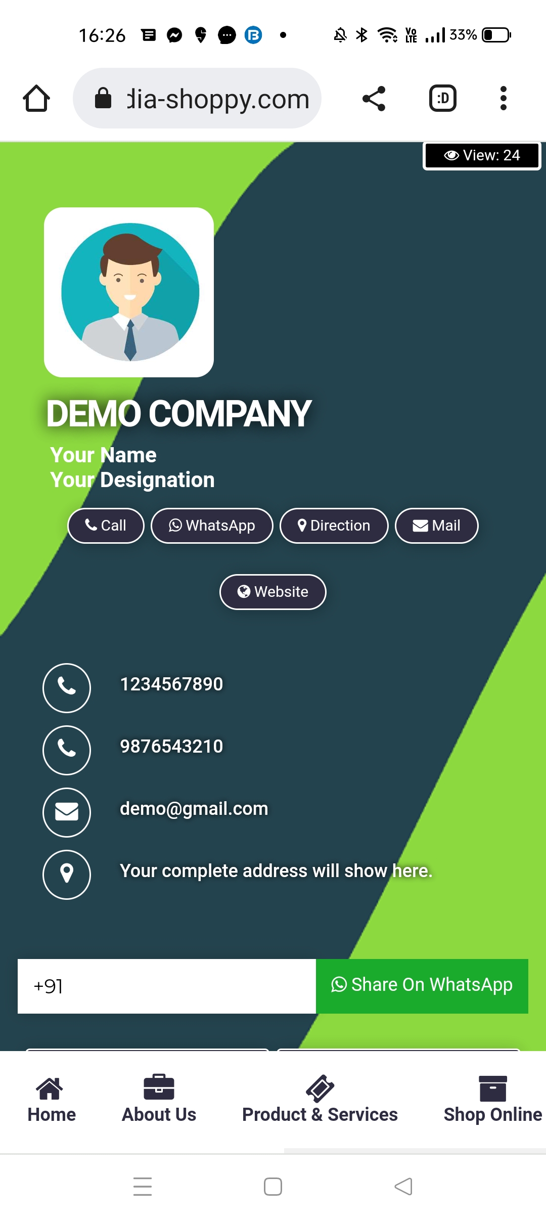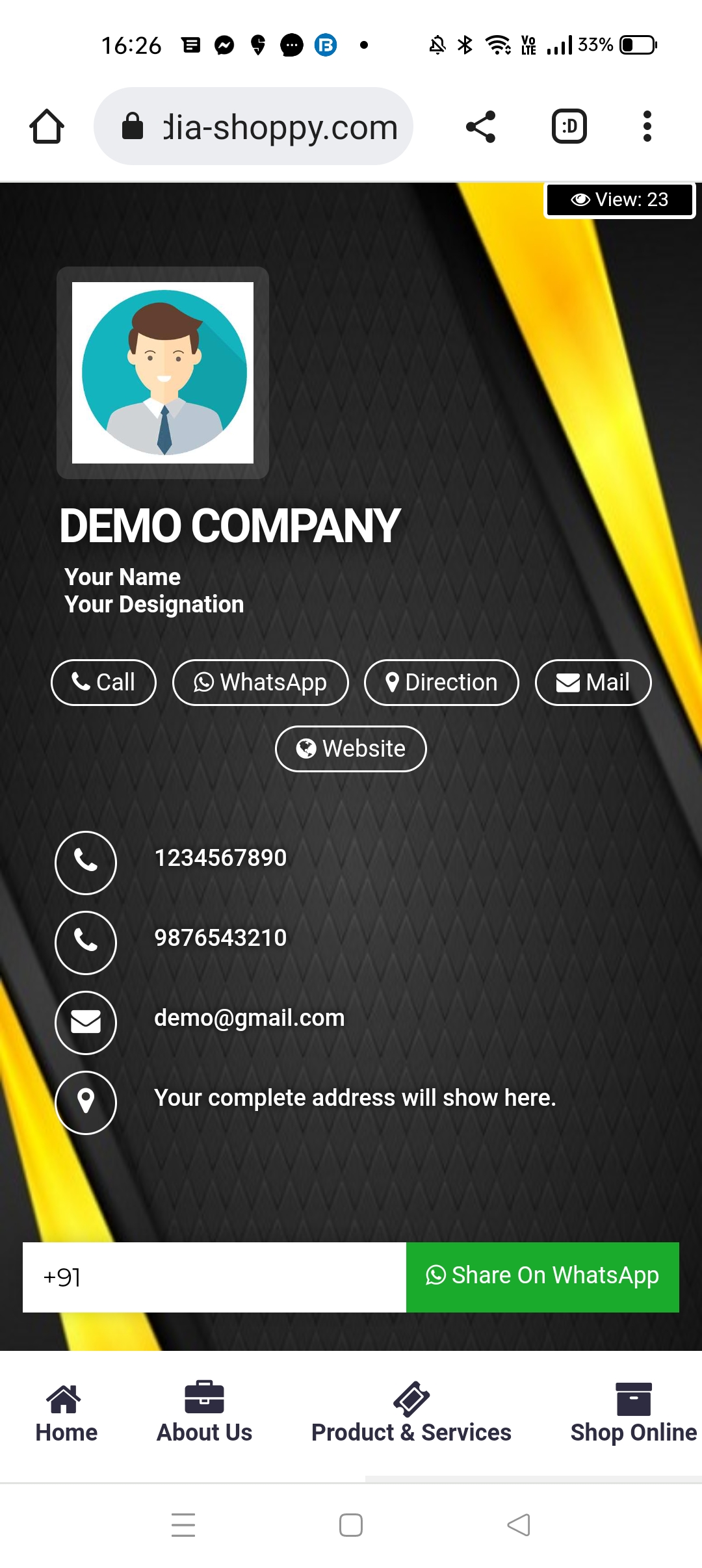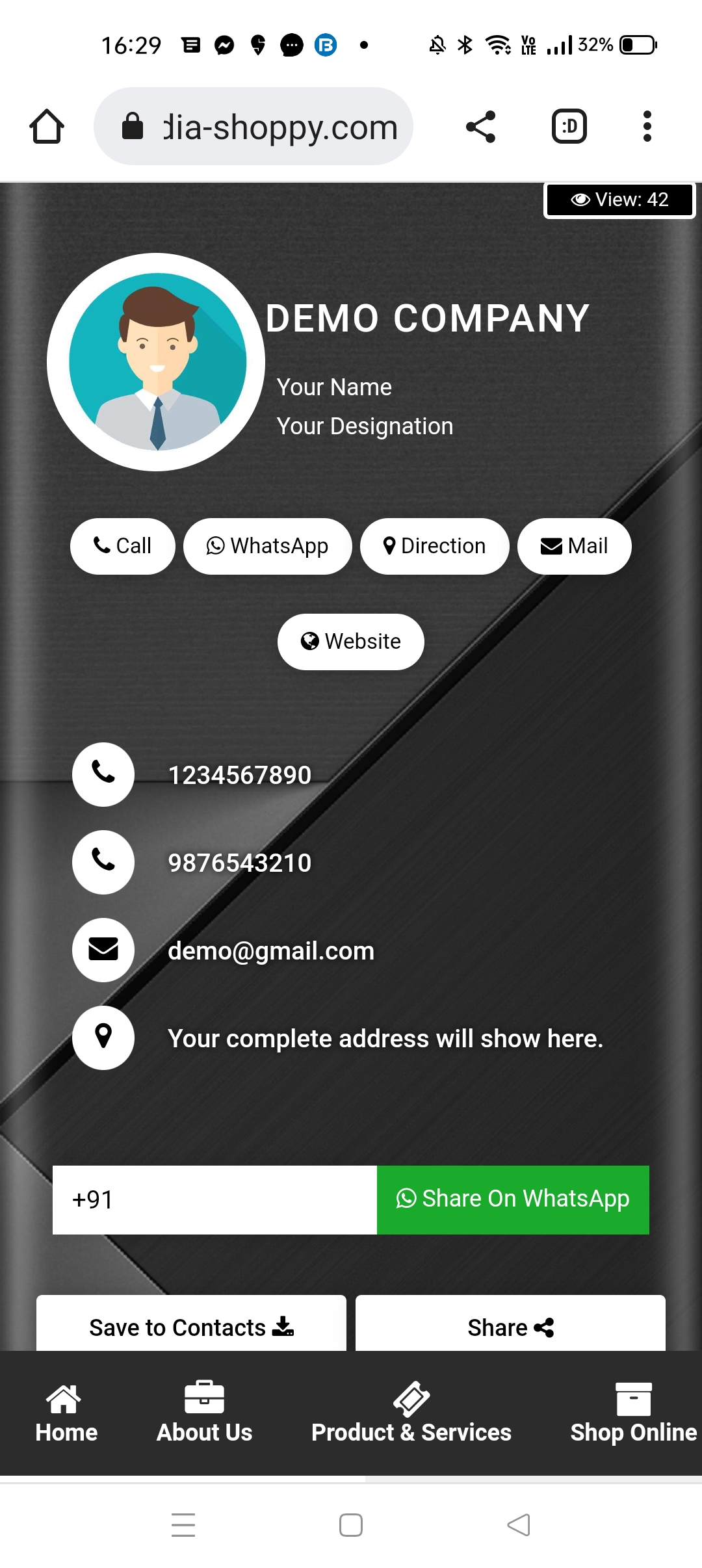 The shortest route to your customers is through their mobile phones. Utilize our share options and take your brand viral by sharing your ApnaDigicard with your clients and friends.
